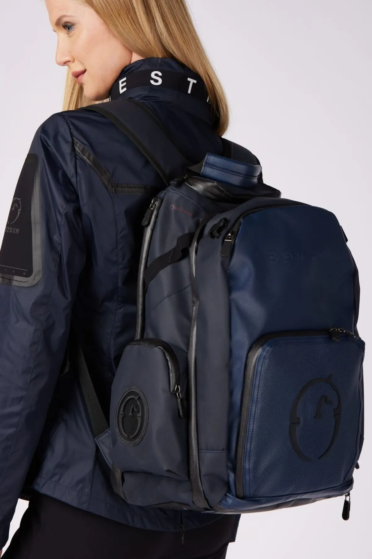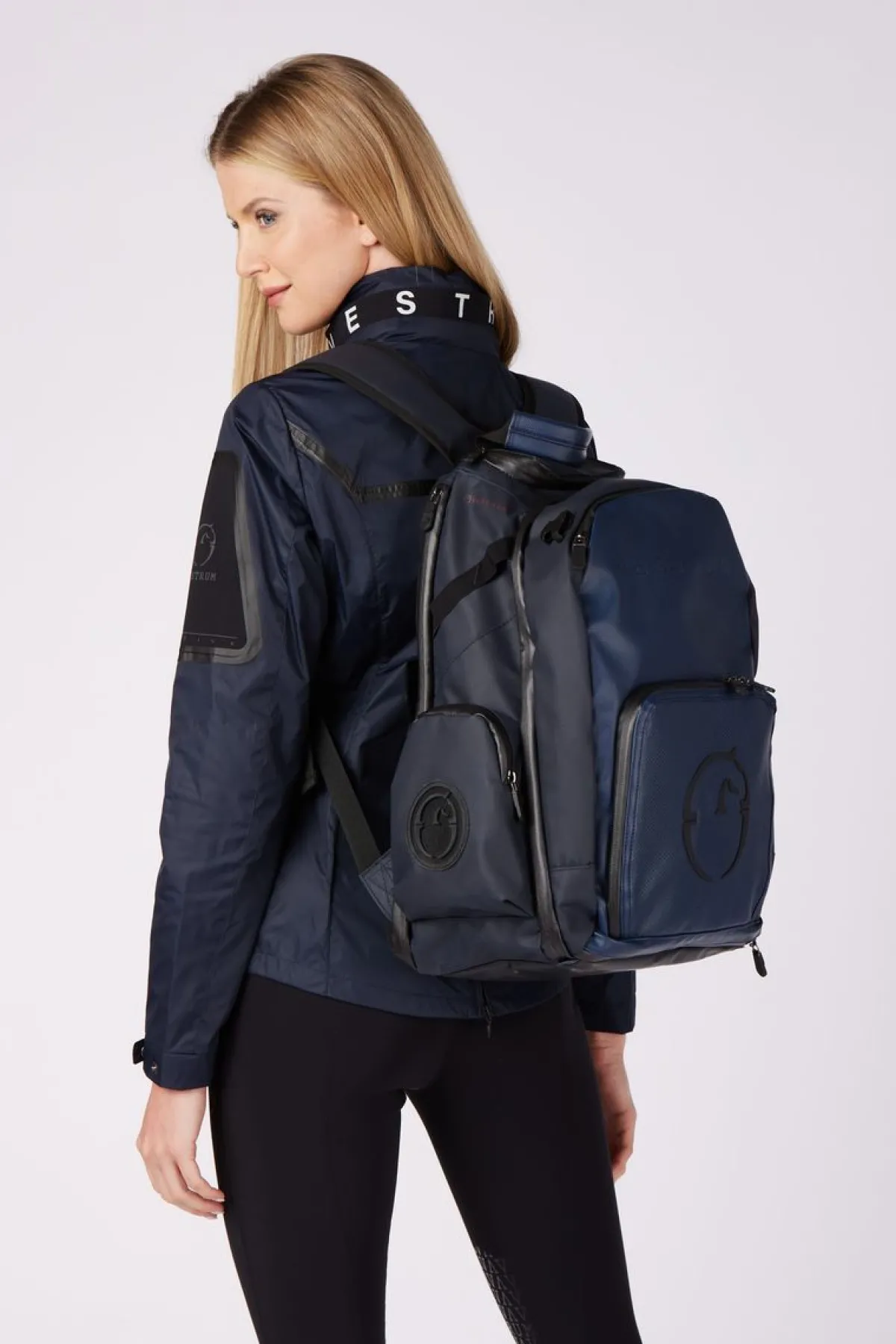 Teknisk ryggsekk med eksklusivt design utformet ned til den minste detalj for optimal oppbevaring og transport av hestens og rytterens utstyr.